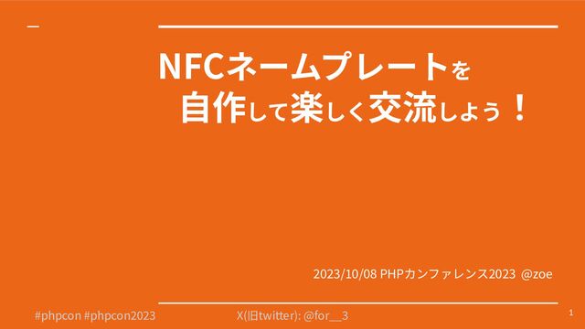 2023/10/08 開催「PHPカンファレンス2023」( https://phpcon.php.gr.jp/2023/ )の懇親会LT発表した 「[PHPカンファレンス2023]NFCネームプレートを自作して楽しく交流しよう!」の資料です。