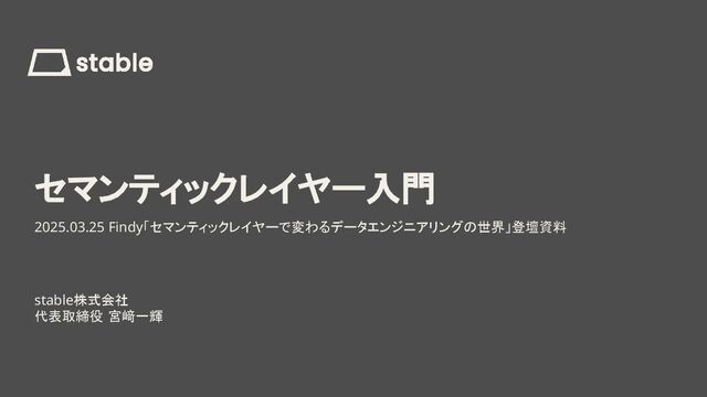 Copyright stable, inc. All rights reserved. セマンティックレイヤー入門 2025.03.25 Findy「セマンティックレイヤーで変わるデータエンジニアリングの世界」登壇資料