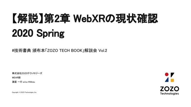 【解説】第2章 WebXRの現状確認 2020 Spring / zozotechbook1...