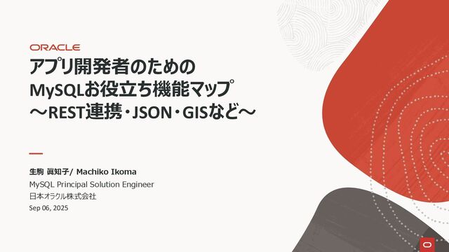 and/or its affiliates. VS Codeプラグインとして提供 データベースノートブックインタフェース • 書込み, 実行, 変更 MySQL Shell GUI コンソール • MySQL Shellの活用 MySQL環境の統合 • MySQLオンプレミスとHeatWaveインスタンス管理 ドキュメント:MySQL Shell GUI / MySQL Shell for VS Code https://dev.mysql.com/doc/mysql-shell-gui/en/