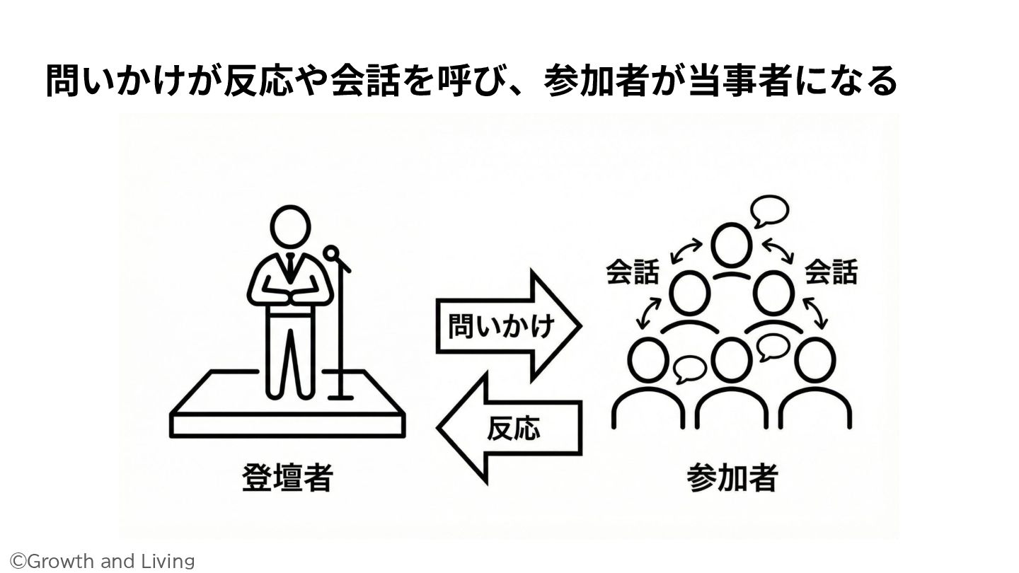 ©Growth and Living 問いかけが反応や会話を呼び、参加者が当事者になる