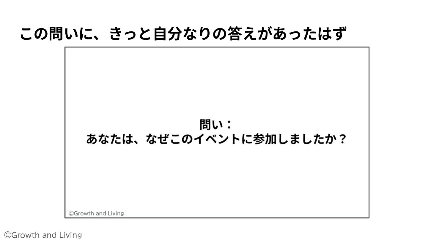 ©Growth and Living 問い: あなたは、なぜこのイベントに参加しましたか?
