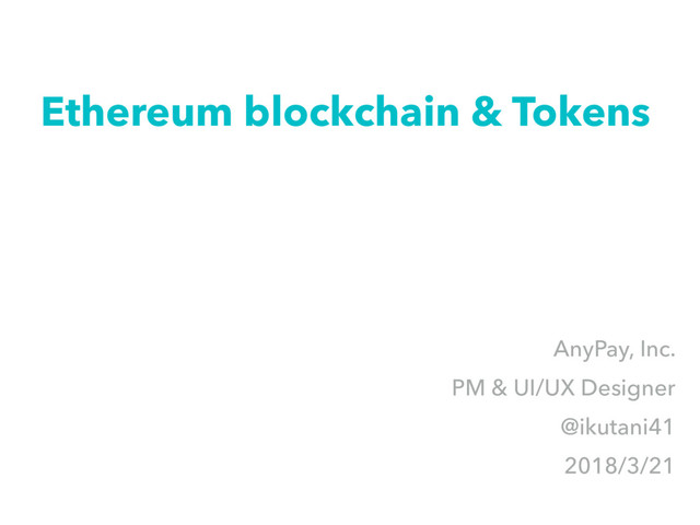 Ethereum blockchain & Tokens AnyPay, Inc. PM & UI/UX Designer