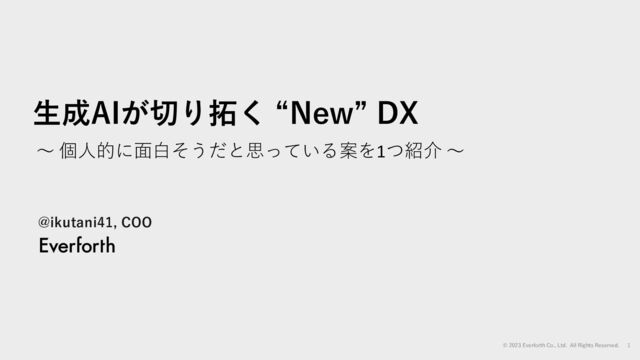 個⼈的に⾯⽩そうだと思っている案を1つ紹介 〜 ⽣成AIが切り拓く “New” DX @ikutani41, COO