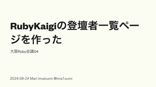 RubyKaigiͷొஃऀҰཡϖʔ δΛ࡞ͬͨ େࡕRubyձٞ04 2024-08-24 Mari Imaizumi @ima1zumi