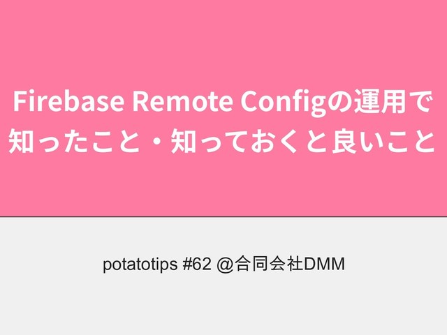 2019年6月18日に合同会社DMMで行われたpotatotips #62で発表した資料です。
