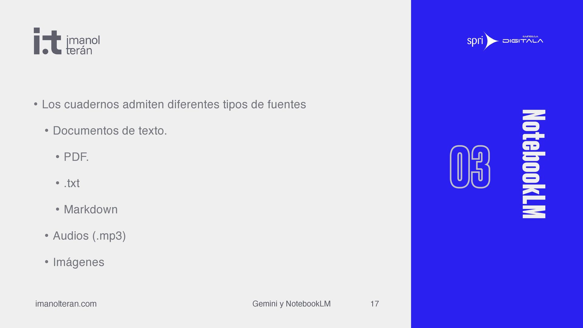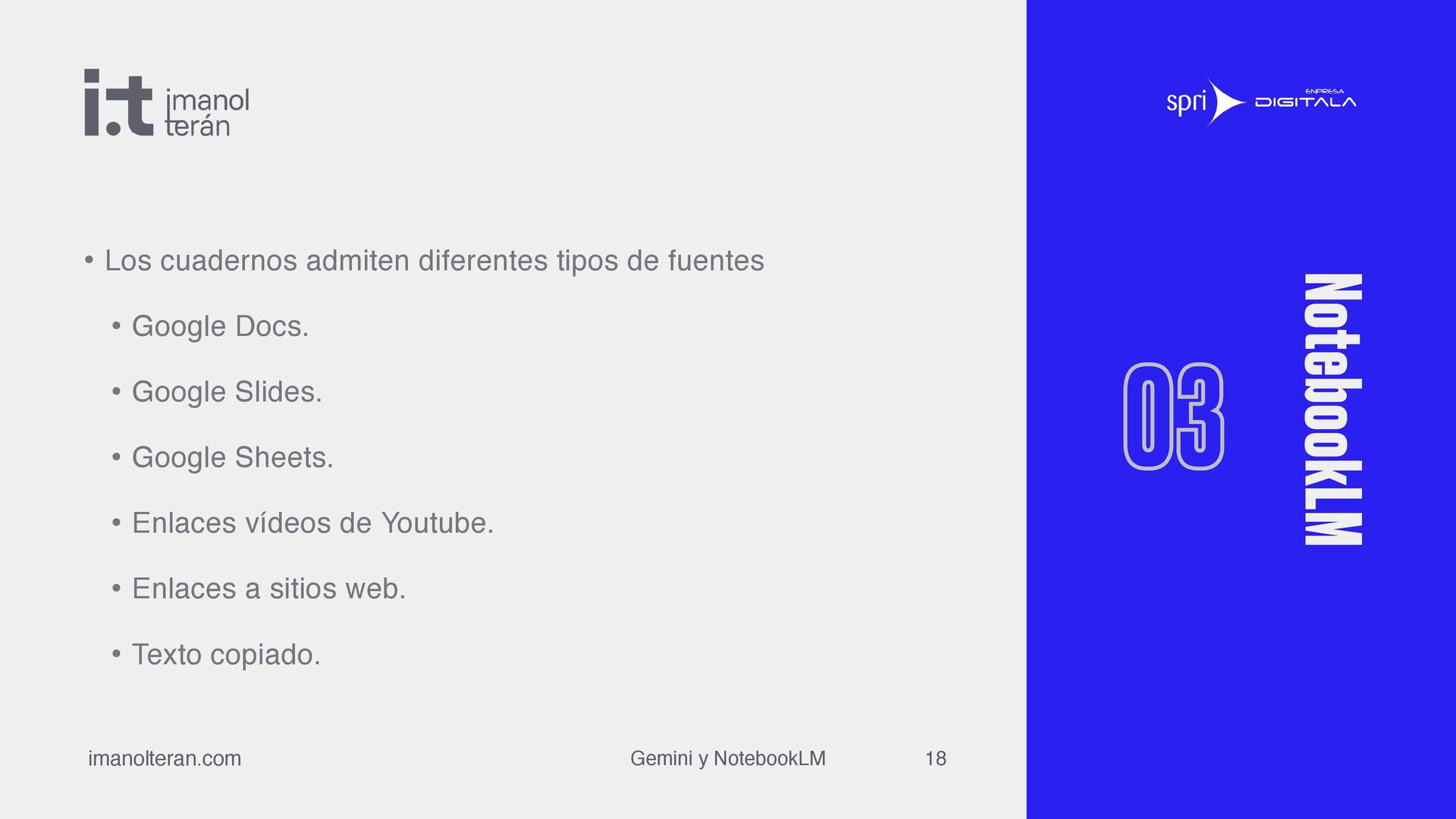 12. Gemini y NotebookLM imanolteran.com • Los cuadernos admiten diferentes tipos