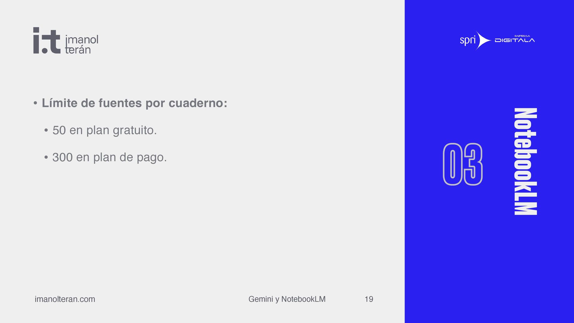 13. Gemini y NotebookLM imanolteran.com • Límite de fuentes por cuaderno:
