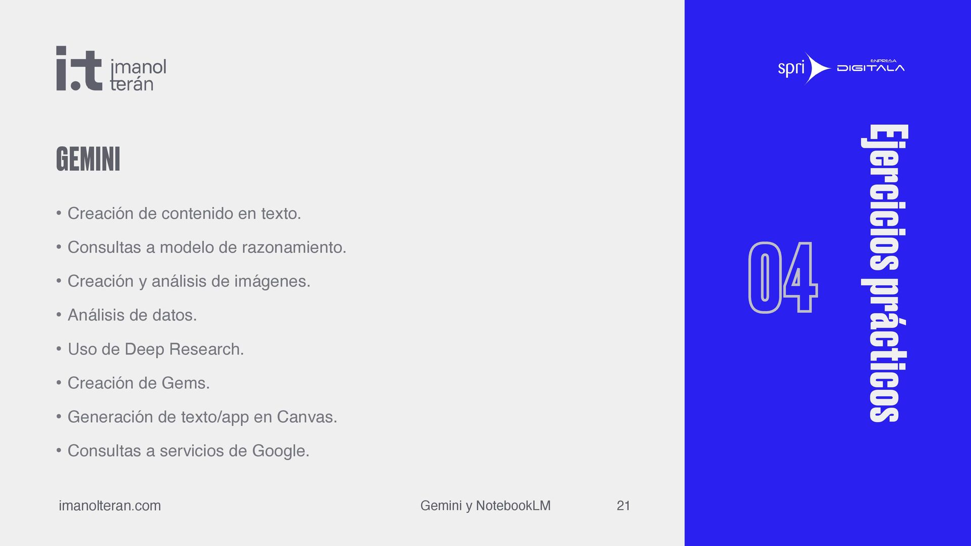 9. Gemini y NotebookLM imanolteran.com • Integración con servicios de Google.