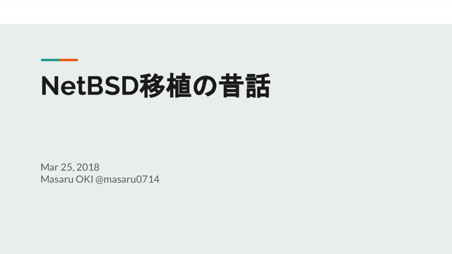 NetBSD移植の昔話 Mar 25, 2018 Masaru OKI @masaru0714