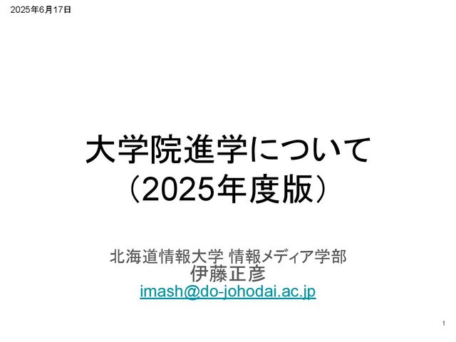 大学院進学について (2025年度版) 北海道情報大学 情報メディア学部 伊藤正彦