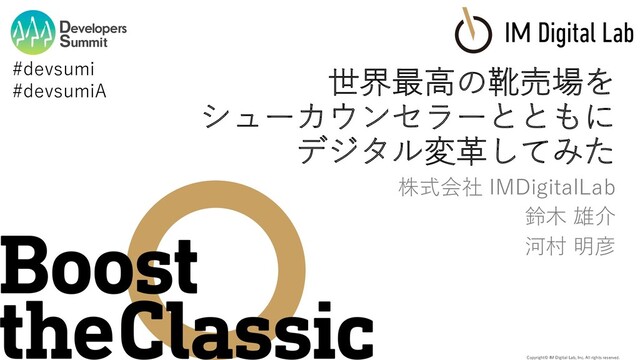 三越伊勢丹でのデジタル変革(DX)の取り組みについて紹介します。 世界最高と言われる伊勢丹新宿店の婦人靴売場ではパーソナルフィッティングサービスYourFIT 365を提供しています。靴売場ともに、お客様ともに、サービスを作り、提供するにあたって何があったのかを紹介します。 https://event.shoeisha.jp/devsumi/20200213/session/2388/ https://togetter.com/li/1468450