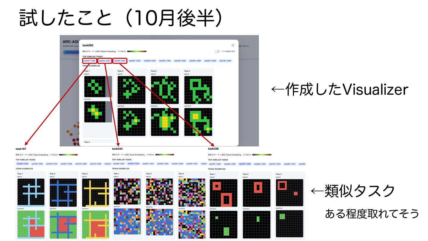 4. ࢼͨ͜͠ͱʢ݄ޙ൒ʣ ⚫︎ ৳ͼ೰ΉλεΫΛத৺ʹ"*ΤʔδΣϯτΛͻͨ͢Βճ͢ ⚪︎ $POUFYUΛվྑ ◼︎ "3$(&/͚ͩͰྑͦ͞͏ͩͬͨͷͰ-"3$ͱೖग़ྗྫΛ࡟আ ◼︎ -"3$ͷຒΊࠐΈಛ௃ྔͰࢉग़ͨ͠ྨࣅλεΫͷղ౴ίʔυ ◼︎