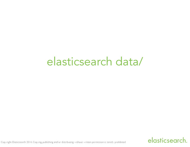 is strictly prohibited data directory • “data” directory in elasticsearch home by default • path.data in config/elasticearch.yml • --path.data=… on command line • handled by deb and rpm packages !