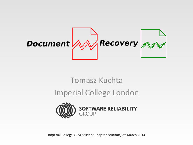 In this seminar I will talk about: the reasons why documents can cause incorrect operation of software, symbolic execution techniques that can be used to tackle this problem and my research project which is about a document recovery approach that is independent of the input format.