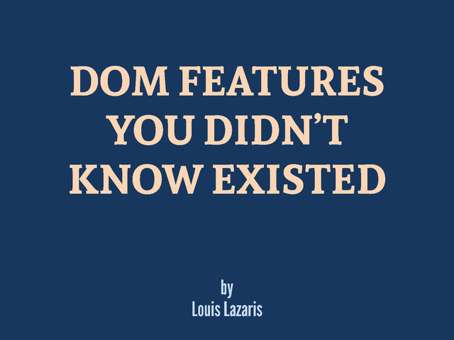 Presentation at CSS Dev Conf, October 27, 2015 on the Queen Mary in Long Beach, California, USA. (http://tinyurl.com/domfeatures / http://www.impressivewebs.com/dom-features-css-dev-conf-2015/)