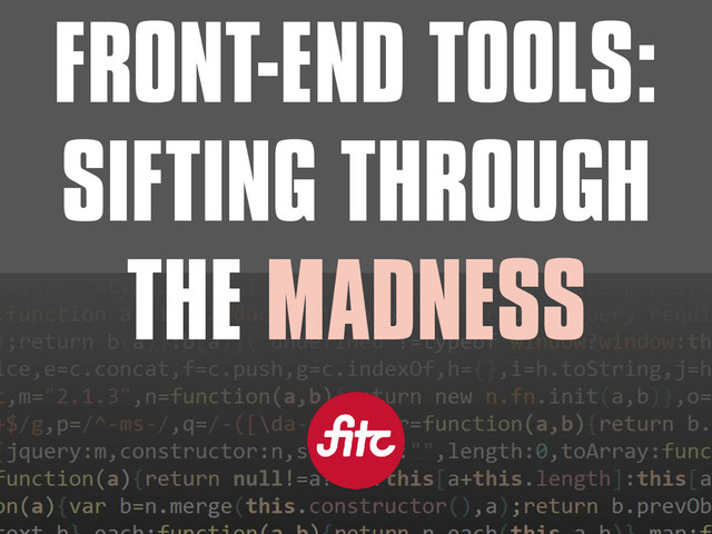 The front-end tools landscape is growing at an exponential pace. Every week there are new plugins, new coding methodologies, new native apps, new JavaScript utilities, new jQuery plugins, new build tools, Grunt plugins, JavaScript libraries and so on. Many help us to solve problems and be more productive.