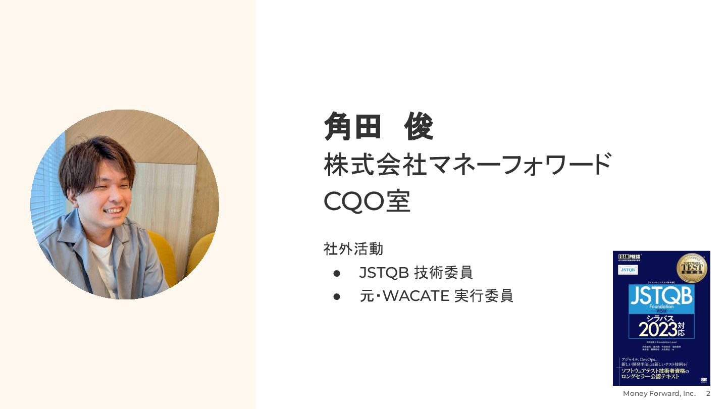 Money Forward, Inc. 2 角田 俊 社外活動 • JSTQB 技術委員 •