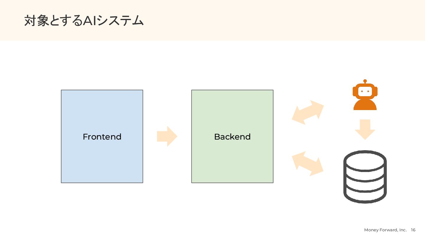 Money Forward, Inc. 16 対象とするAIシステム Frontend Backend