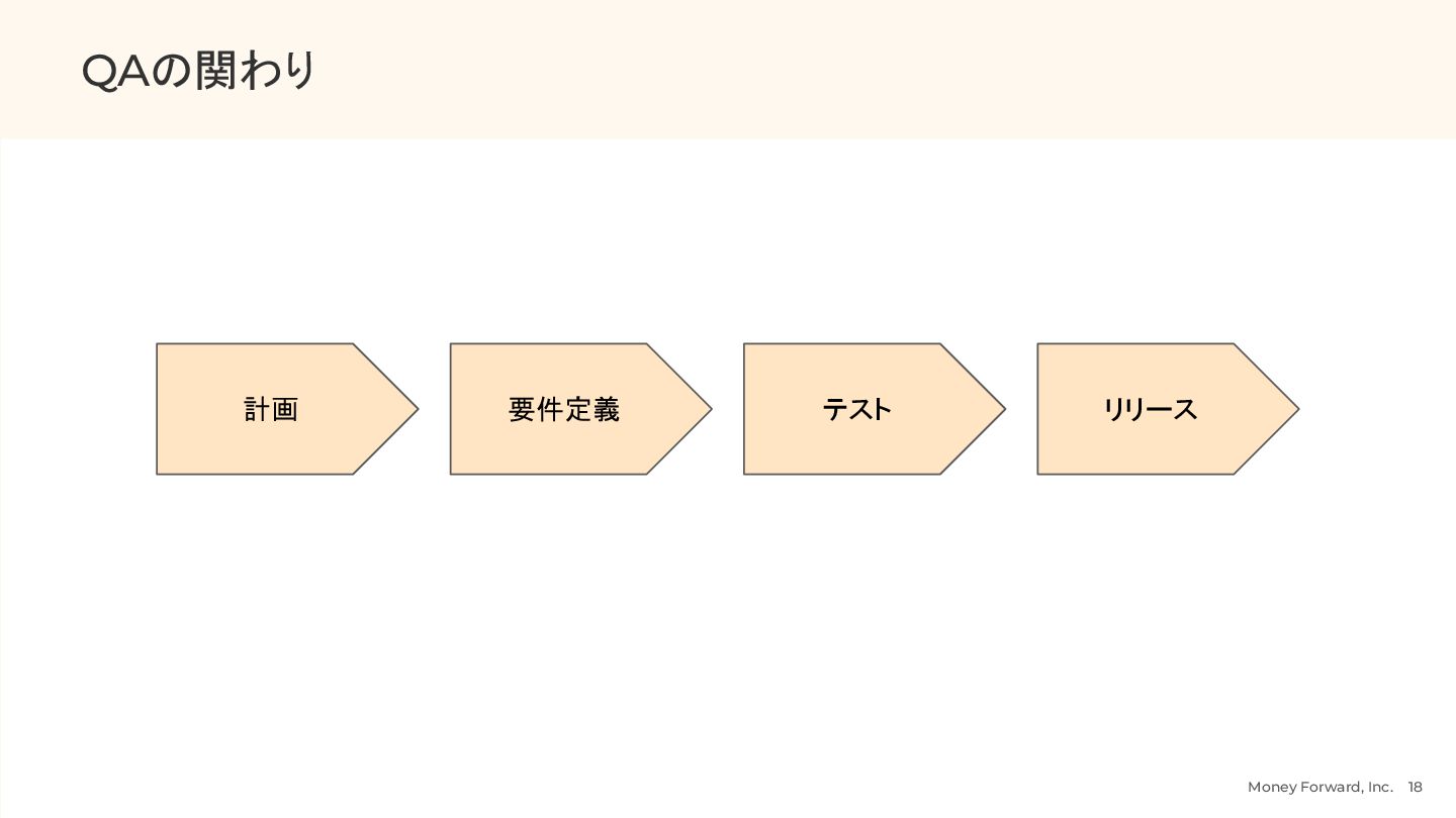 Money Forward, Inc. 18 QAの関わり 計画 要件定義 テスト リリース
