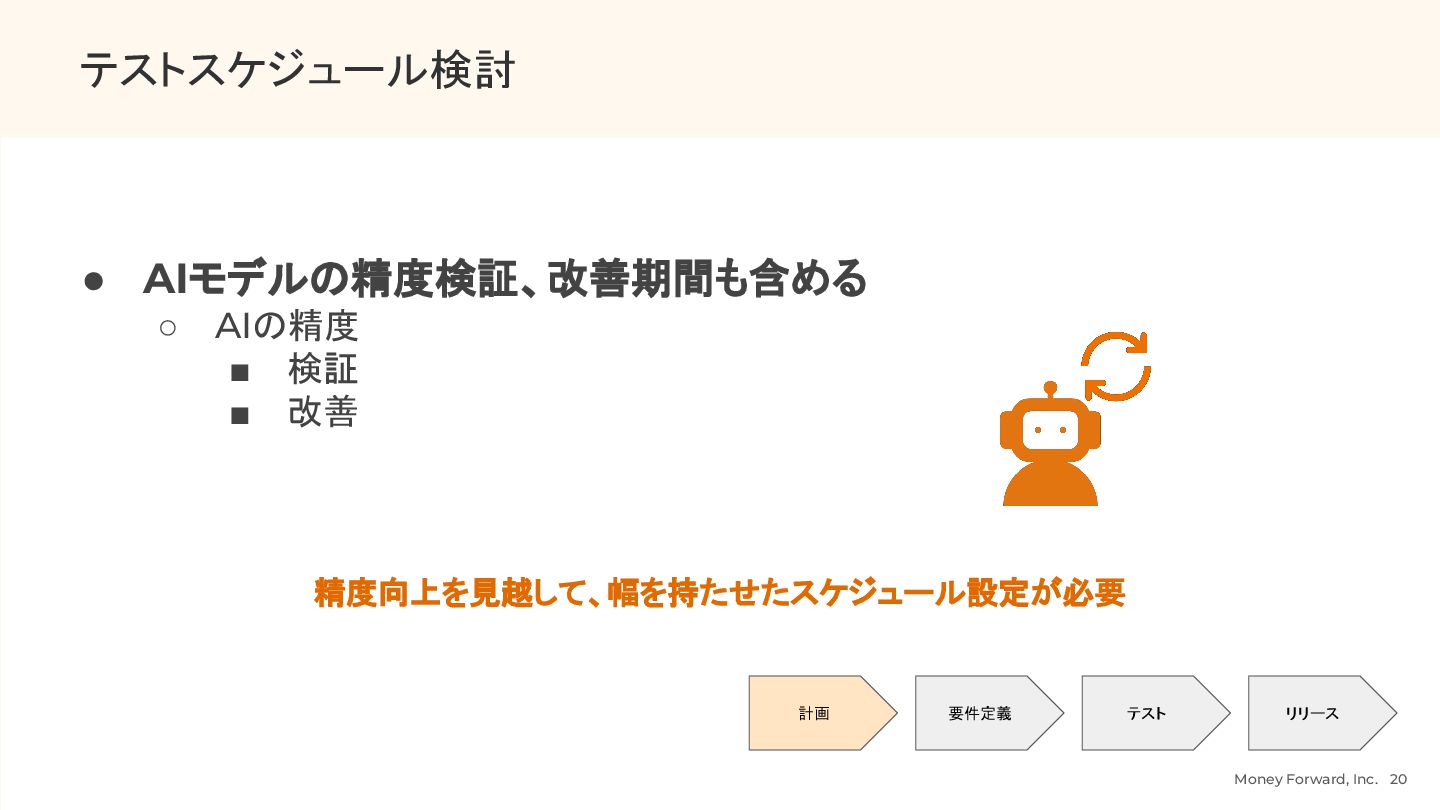 Money Forward, Inc. 20 テストスケジュール検討 • AIモデルの精度検証、改善期間も含める ◦ AIの精度 ▪