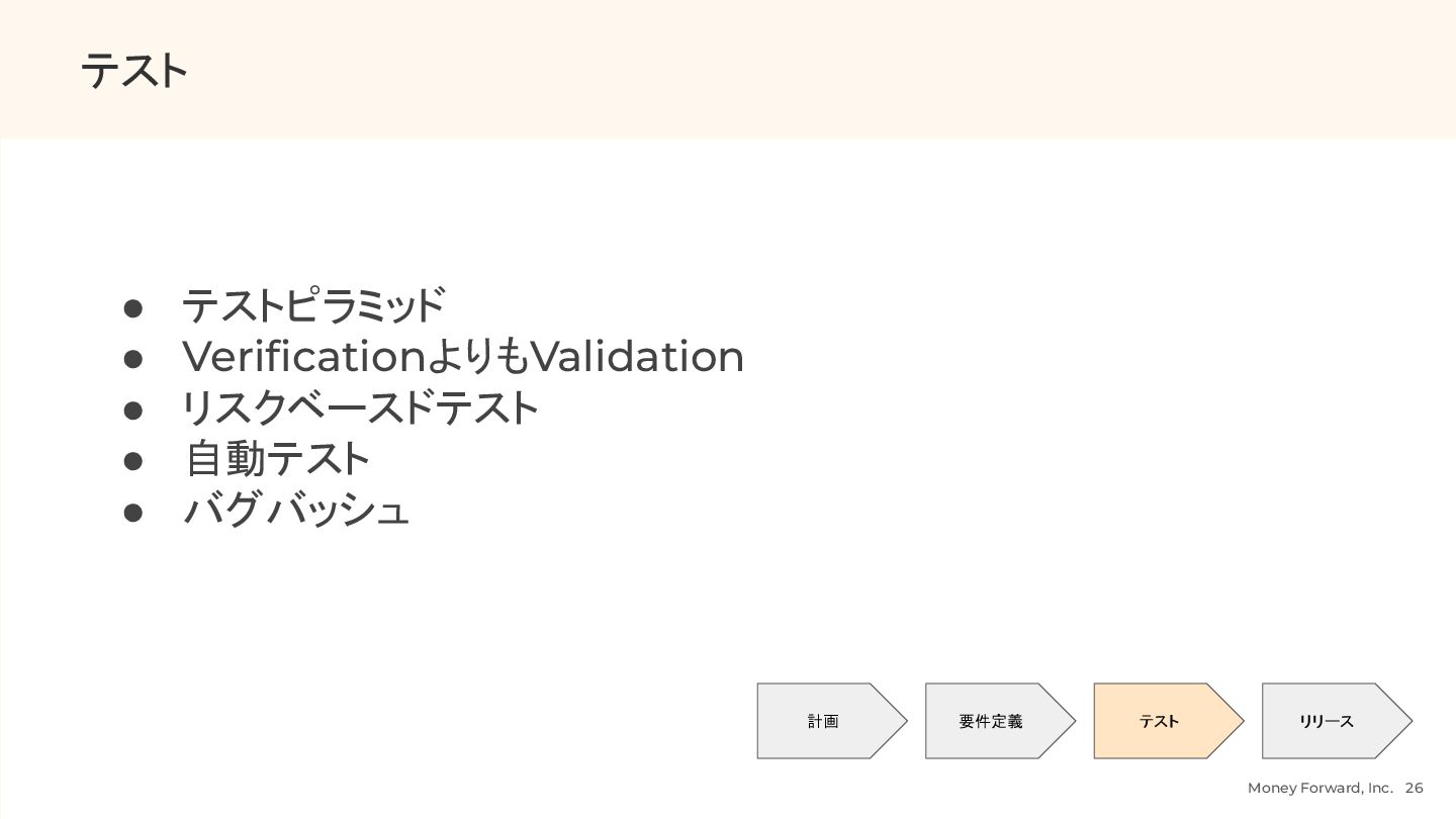 Money Forward, Inc. 26 テスト 計画 要件定義 テスト リリース •