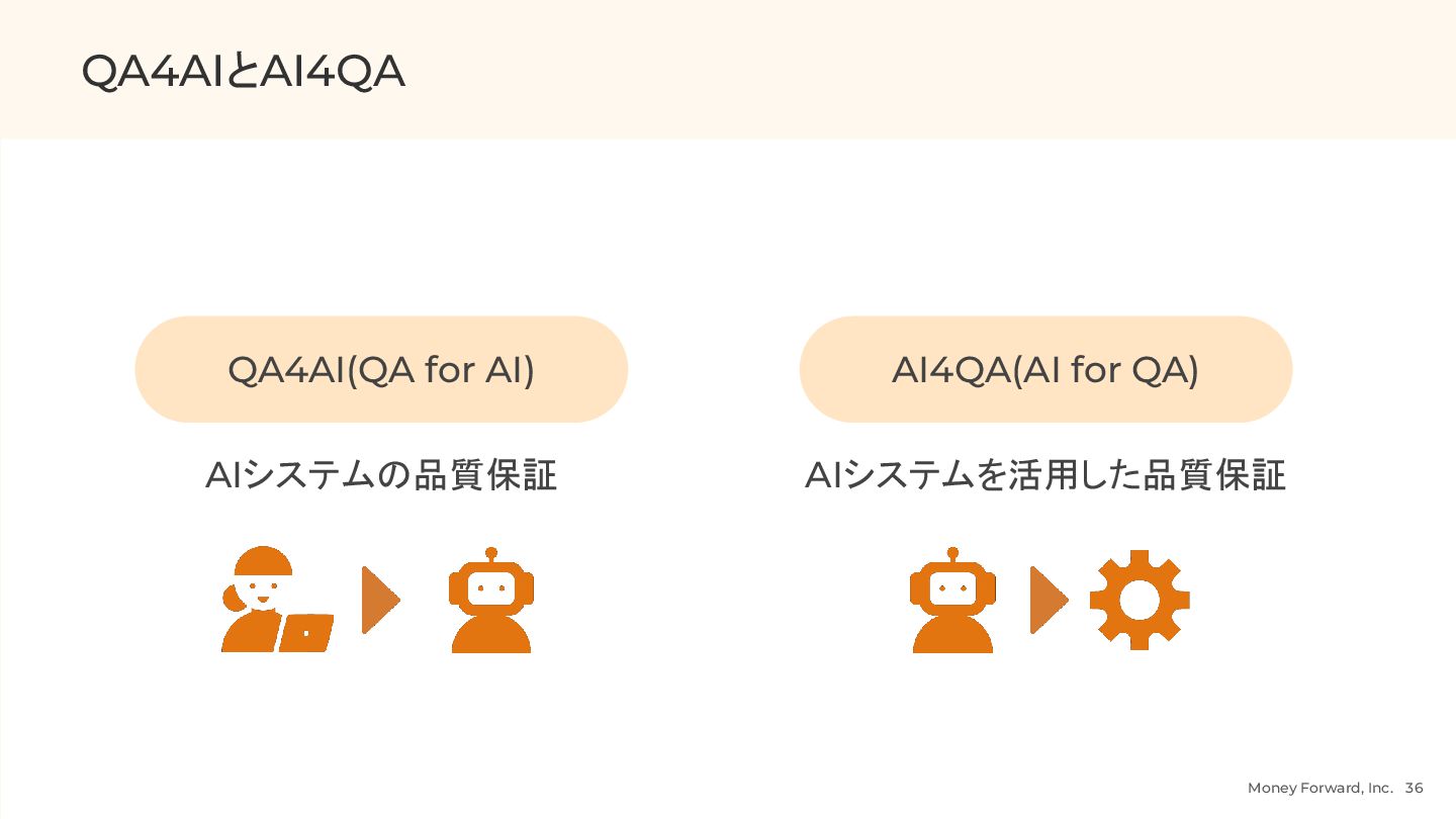 Money Forward, Inc. 36 QA4AIとAI4QA AIシステムの品質保証 QA4AI(QA for AI) AI4QA(AI