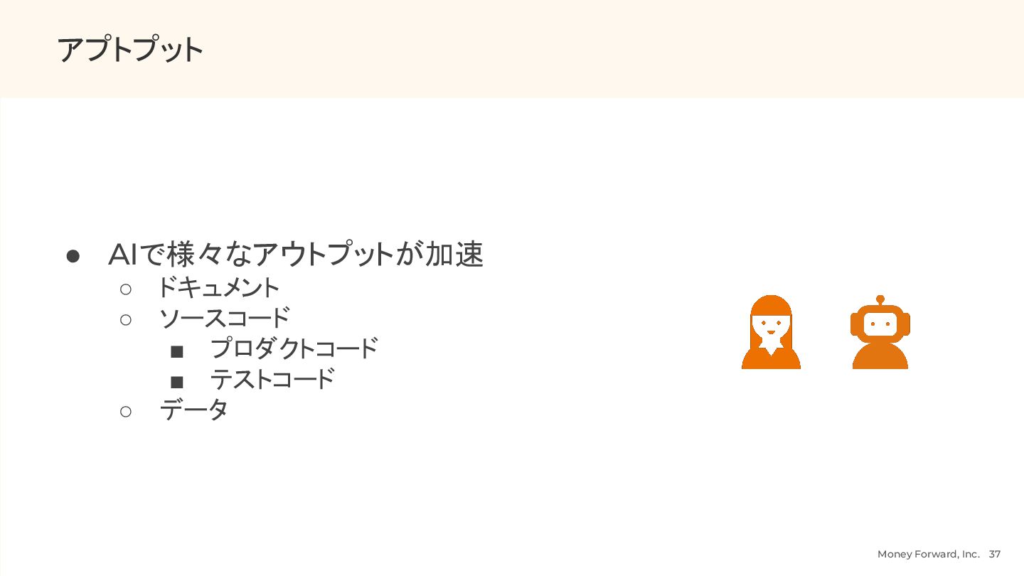 Money Forward, Inc. 37 アプトプット • AIで様々なアウトプットが加速 ◦ ドキュメント ◦