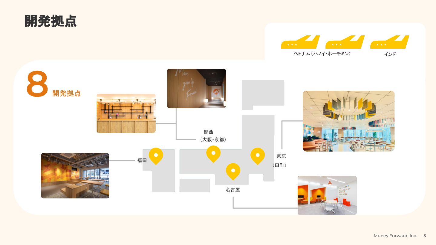 Money Forward, Inc. 5 開発拠点 ベトナム(ハノイ・ホーチミン) インド 東京 (田町) 名古屋