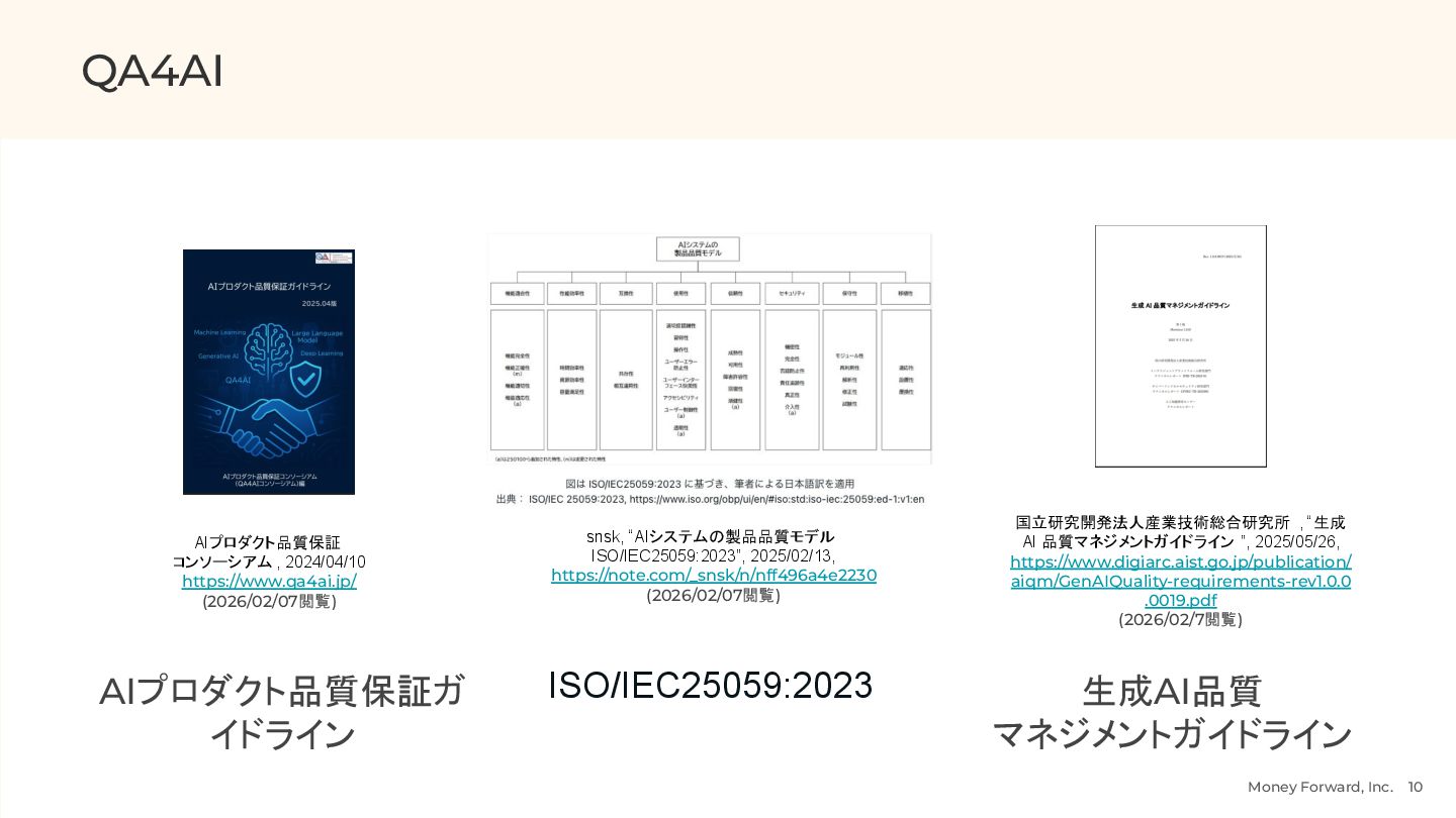 Money Forward, Inc. 10 QA4AI AIプロダクト品質保証ガ イドライン AIプロダクト品質保証 コンソーシアム ,
