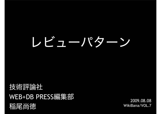 レビューパターン 技術評論社 WEB+DB PRESS編集部 稲尾尚徳 2009.08.08 WikiBana/VOL.7