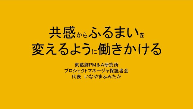 共感から ふるまいを 変えるように 働きかける 東葛飾PM&A研究所 プロジェクトマネージャ保護者会 代表 いなやまふみたか
