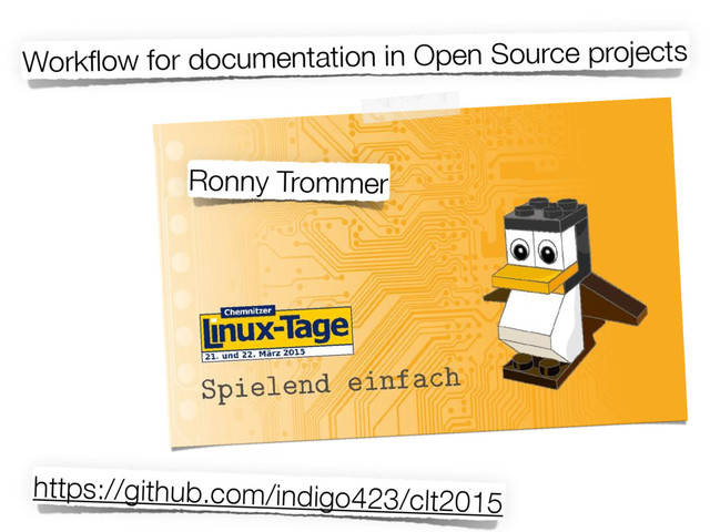 Workflow for documentation in Open Source projects Ronny Trommer https://github.com/indigo423/clt2015