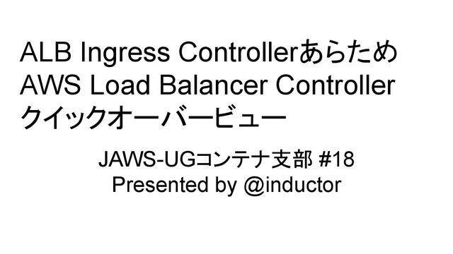 ALB Ingress Controllerあらため AWS Load Balancer Controller クイックオーバービュー JAWS-UGコンテナ支部 #18