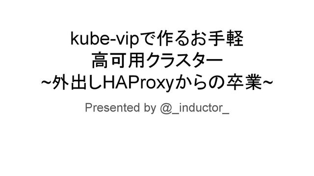 kube-vipで作るお手軽 高可用クラスター ~外出しHAProxyからの卒業~ Presented by @_inductor_
