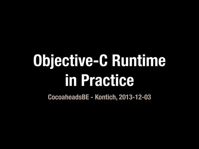 can't use Objective-c without the runtime. ‣ Works behind the scenes: ‣ most developers aren't even aware it is there and that they’r using it ‣ puts the objective in Objective-C ‣ implemented as dynamic shared library ‣ loaded by default by the OS