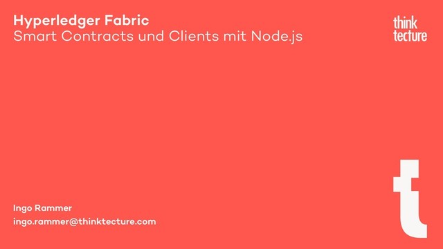 (20 Personen) technischen Beratungsunternehmen für Software- Architekten und –Entwickler Mein persönlicher Fokus: Blockchain Technologien für B2B-Verwendung, von den Tiefen der Technologie bis hin zu ISO TC 307, Enterprise Ethereum Alliance und Hyperledger Foundation Slides: https://thinktecture.com/presentations Kontakt: [email protected] Twitter: @ingorammer