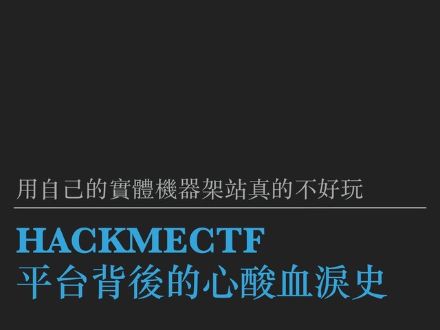 HACKMECTF 平台背後的⼼酸⾎淚史 ⽤⾃⼰的實體機器架站真的不好玩