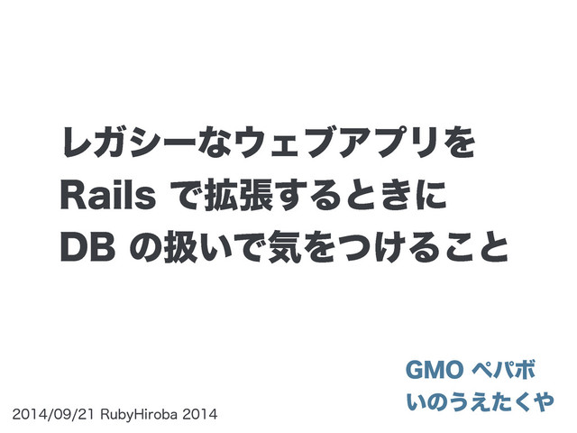 PHP 製のレガシーなウェブアプリのサブシステムを Rails で拡張しました。それは新規に Rails アプリをつくるよりも遙かに大変でした。DB の扱いで苦労した点などを紹介します。