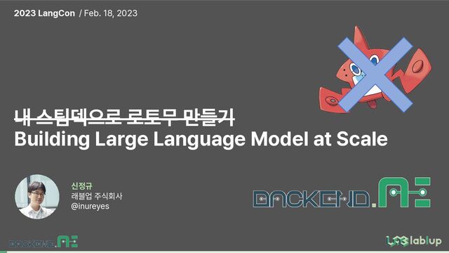 2021) – 중국어 단일 언어 모델 중 가장 큰 사이즈 (2000억 파라미터) – 감정 주제에 대한 폭넓은 대화 지원 • OPT-175B (Meta, 2022) – 사전 훈련하여 공개한 영문 기반 모델 중 가장 큰 사이즈 (1750억 파라미터) – 모델 동작 시 Nvidia V100 16장 GPU 요구 (512GB) / 실제 동작시 사용 메모리는 약 350GB (A100 5장) – 모델 자체보다, 모델을 만들면서 고생한 모든 내용을 기록으로 남겨서 공개한 내용이 심금을 울림 • GLM-130B (칭화대, 2022) – 중국산 반도체만으로 만들었다고 합니다. (A100 금수 조치 이후 며칠만에 발표) – 그 이후: A800 들어 보신 분? ✓ A100에서 NVLink 덜어 낸 기종 22