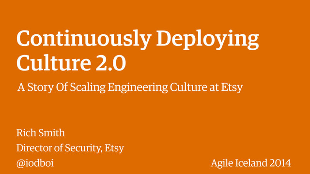 • Director of Security Engineering at Etsy • Cover the AppSec, NetSec, Risk Engineering teams • Also building the security organisation & security culture • Co-Founder of here in Iceland !