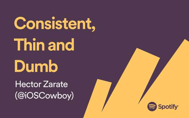 A presentation on how Spotify's iOS application transitioned from a mobile client that was: visually inconsistent, thick and client based to a more modern 'consistent, dumb and thin' one.
