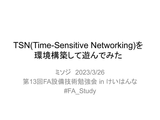 TSN(Time-Sensitive Networking)を 環境構築して遊んでみた ミソジ 2023/3/26 第13回FA設備技術勉強会 in けいはんな #FA_Study