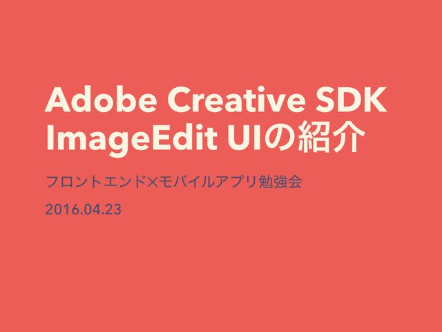 2016.04.23に『フロントエンド✕モバイルアプリ勉強会 』でお話しした、『Adobe Creative SDK ImageEdit UIの紹介』のスライドです。