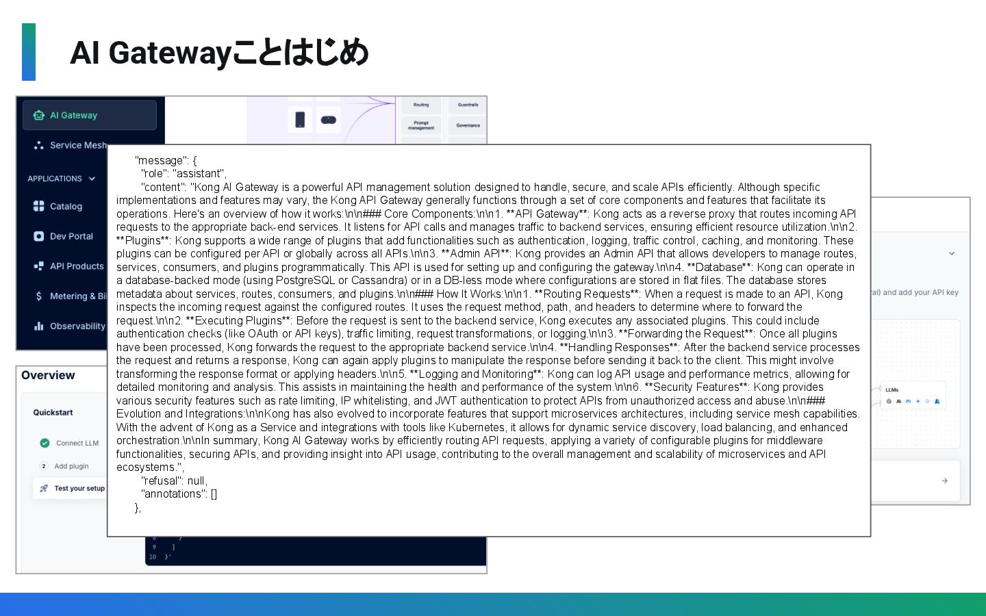12. AI Gatewayことはじめ "message": { "role": "assistant", "content": "Kong AI Gateway