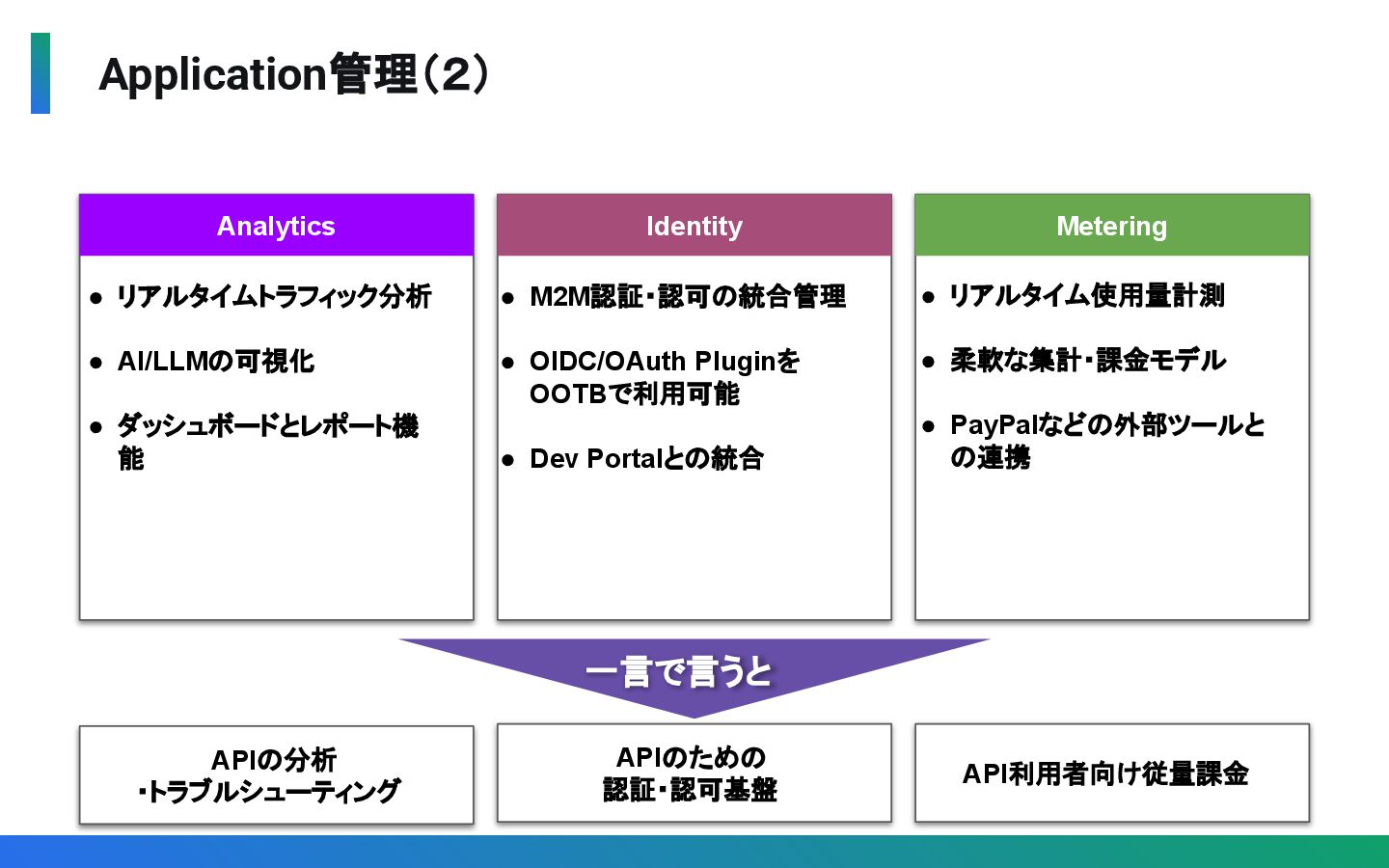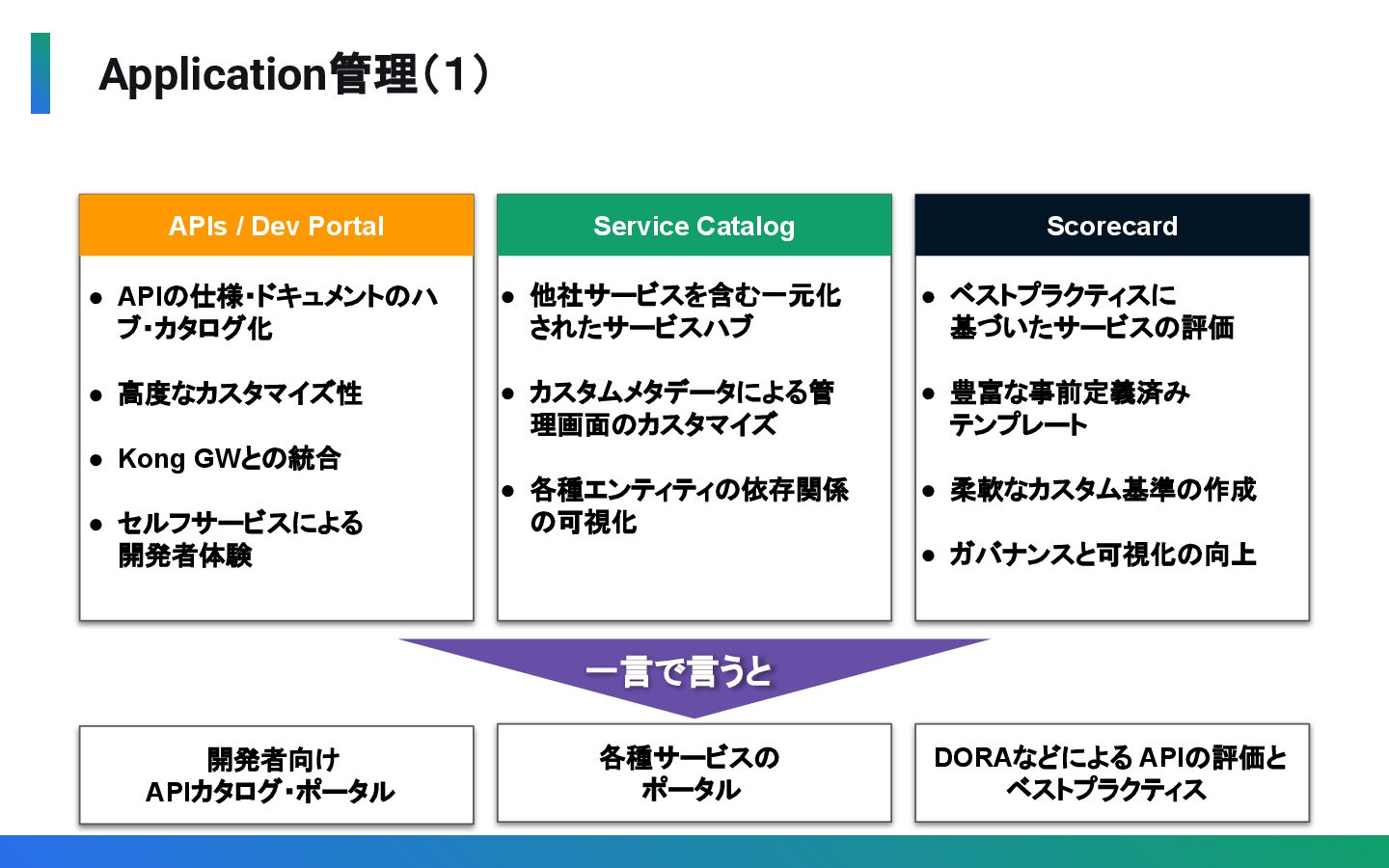 Application管理 APIs (APIカタログ ) / Dev Portal Service Catalog Scorecard Analytics Identity Metering