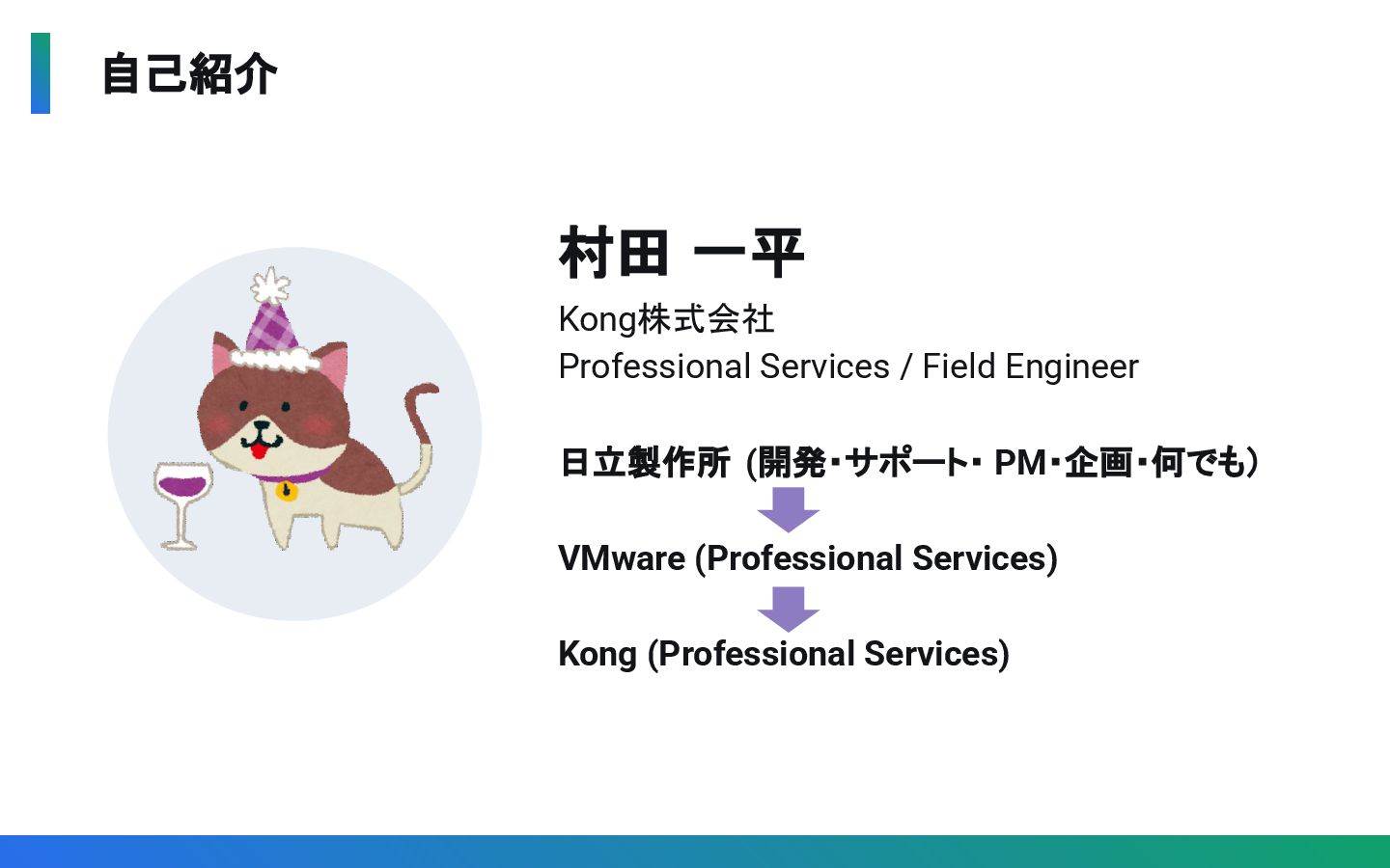 2. 自己紹介 村田 一平 Kong株式会社 Professional Services / Field Engineer 日立製作所