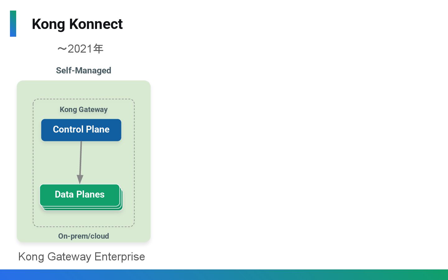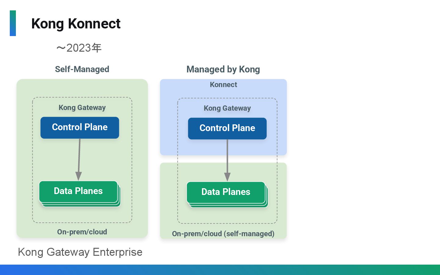 〜2023年 Kong Gateway Enterprise On-prem/cloud (self-managed) Konnect Managed by Kong Kong Gateway Control Plane Data Planes