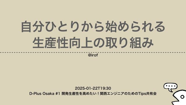 自分ひとりから始められる生産性向上の取り組み #でぃーぷらすオオサカ