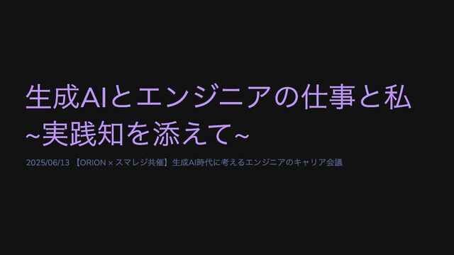 生成AI とエンジニアの仕事と私 ~ 実践知を添えて~ 2025/06/13 【ORION × スマレジ共催】生成AI 時代に考えるエンジニアのキャリア会議